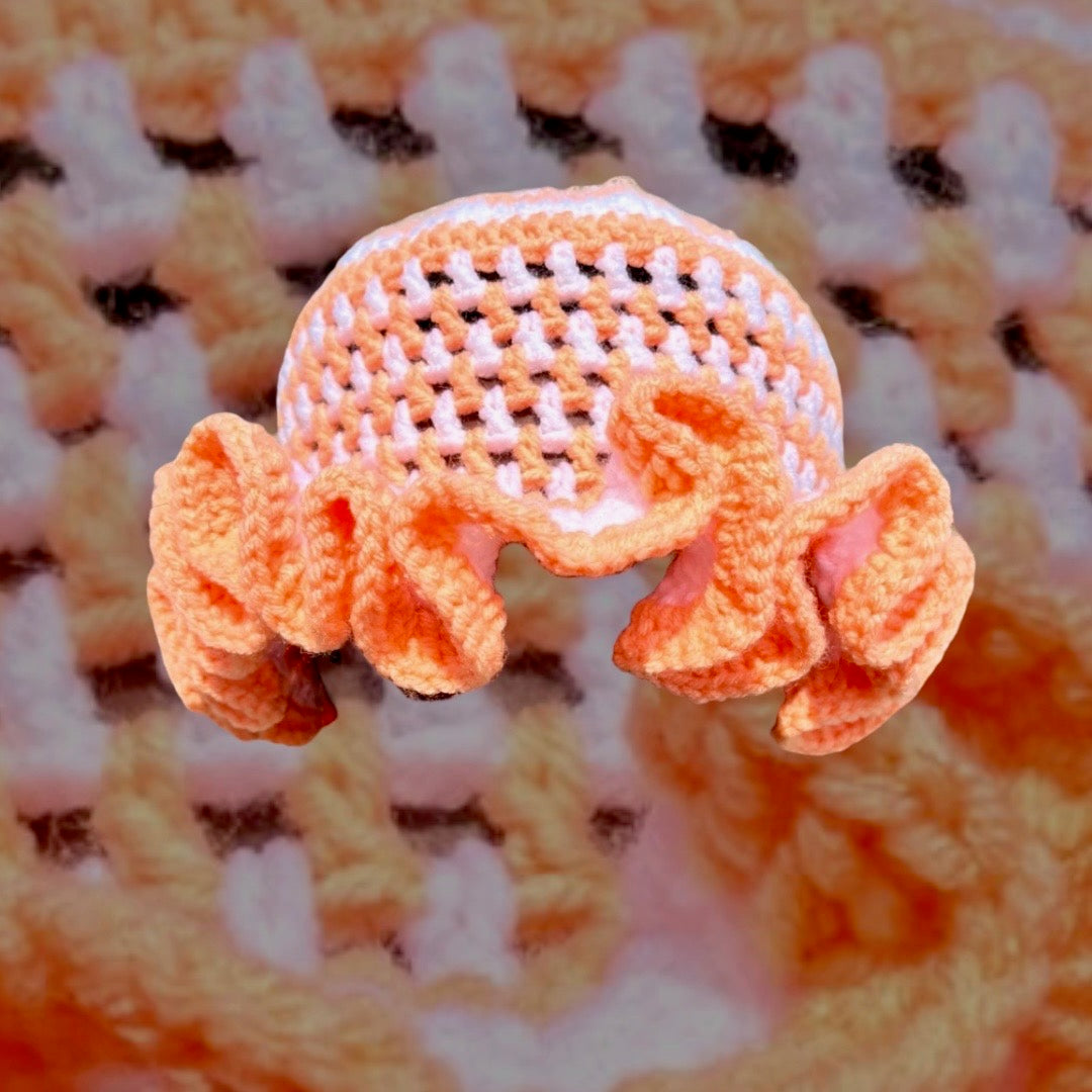 This handmade bucket hat was made with medium 4 acrylic yarn.